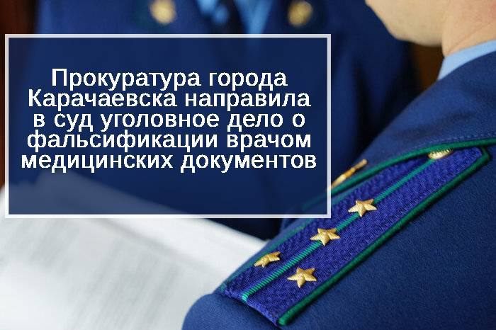Прокуратура города Карачаевска утвердила обвинительное заключение по уголовному делу в отношении врача медицинского учреждения. Она обвиняется по ч. 1 ст. 292 УК РФ (служебный подлог).