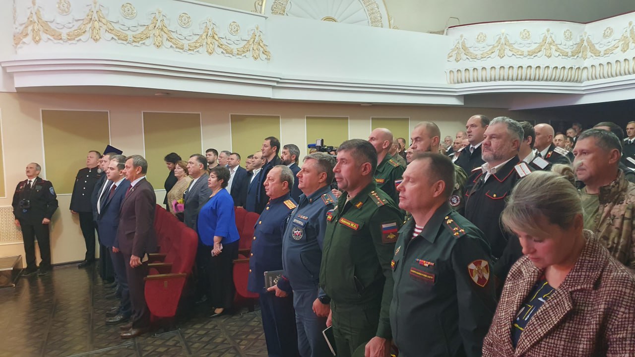 В торжественном мероприятии, посвященном подведению итогов работы казачьего общества и результатам межведомственного взаимодействия, приняли участие первый заместитель атамана Кубанского казачьего войска Виталий Мясников, помощник руководителя регионального следственного управления по общественно-политической работе Рафаэль Багдасаров, представители государственных структур, правоохранительных органов и духовенства.