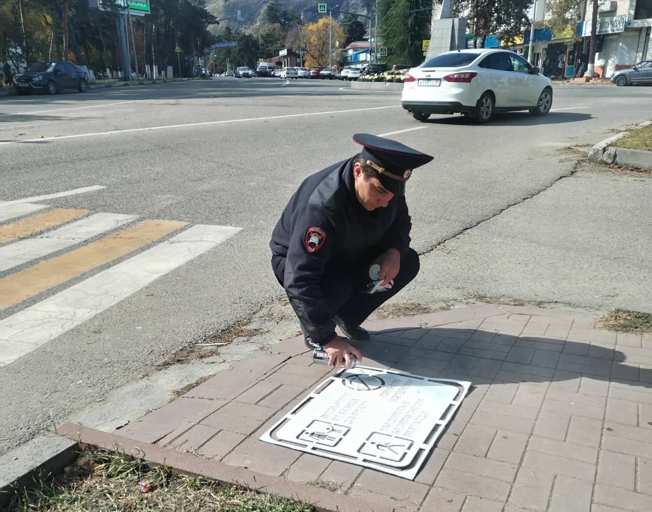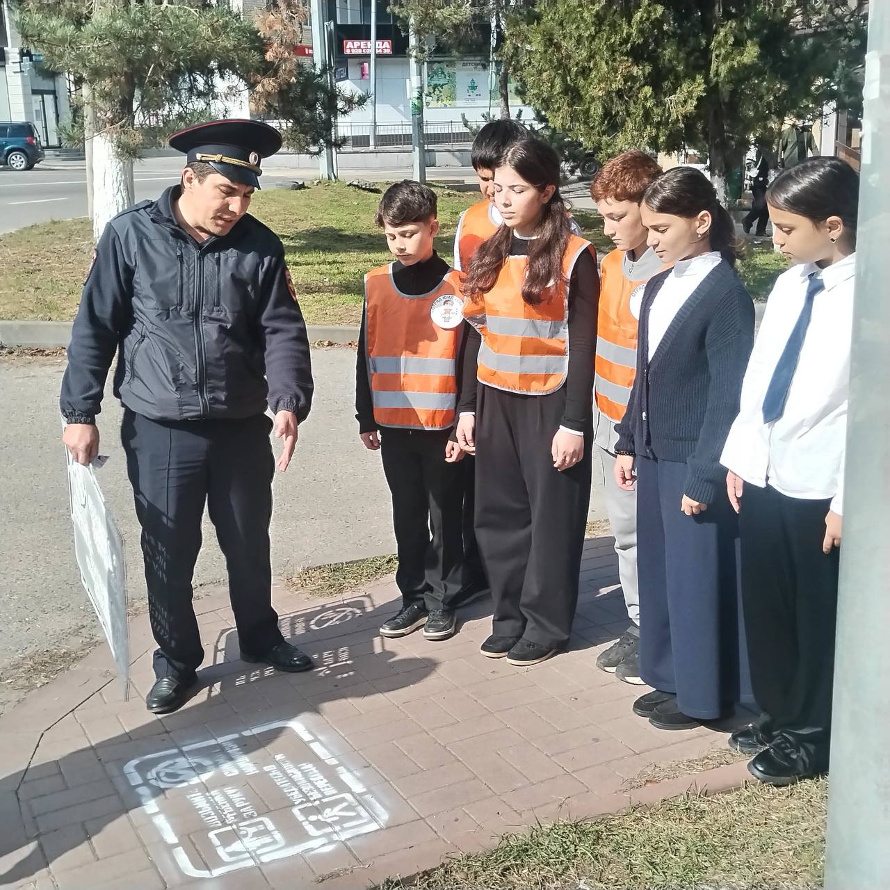 В рамках «Месяца безопасности дорожного движения» сотрудники Госавтоинспекции МО МВД России «Карачаевский» совместно с ребятами из отряда ЮИД общеобразовательной школы №6 г. Карачаевска провели на оживлённом участке районной столицы акцию под названием: «ПДД на асфальте!».