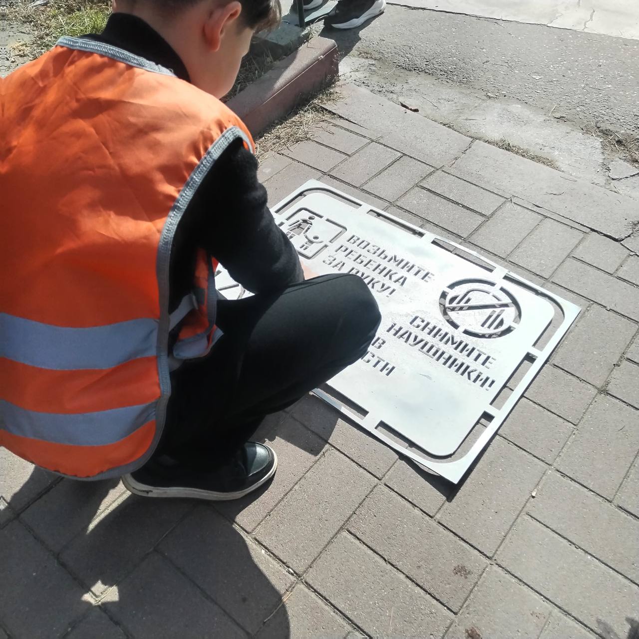 Яркими надписями и рисунками на асфальте, использовав специальные трафареты, юные инспекторы дорожного движения напоминают всем участникам дорожного движения о необходимости соблюдения Правил дорожного движения.