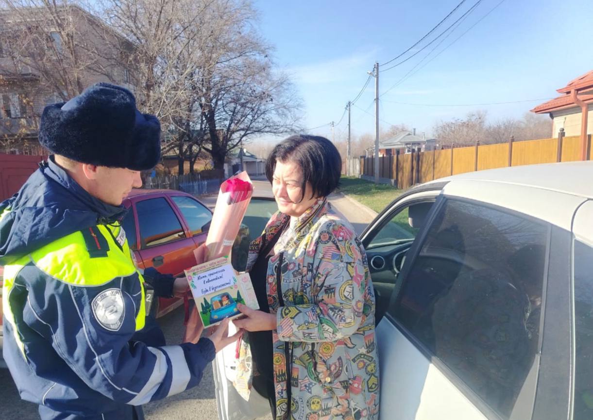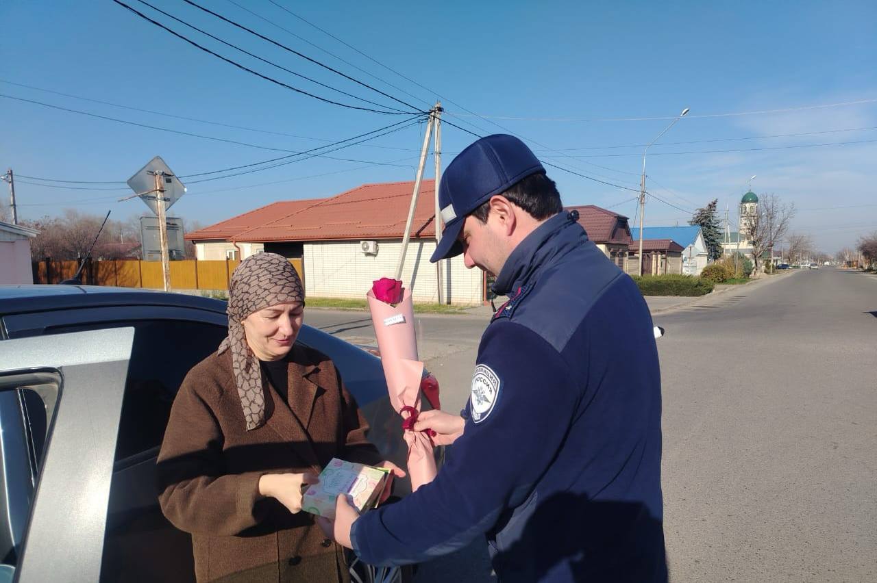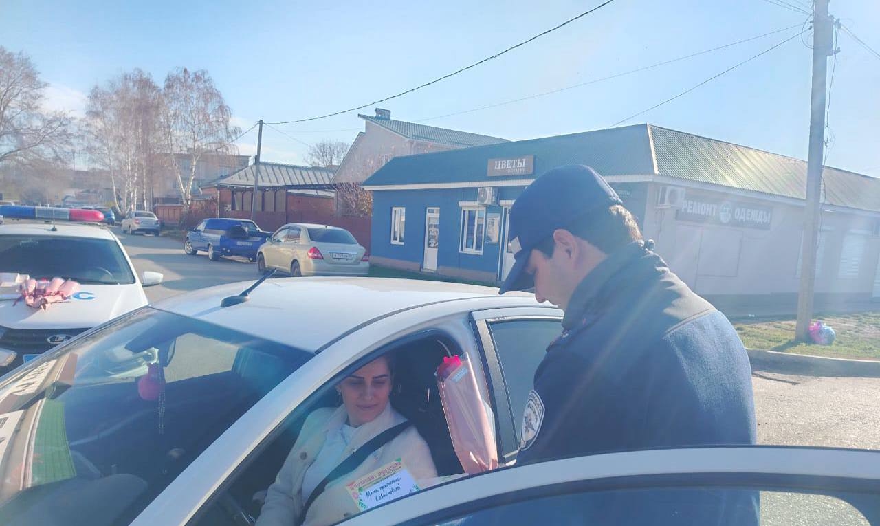 Автоинспекторы поздравили женщин с праздником и напомнили им о важности и необходимости соблюдения Правил дорожного движения.