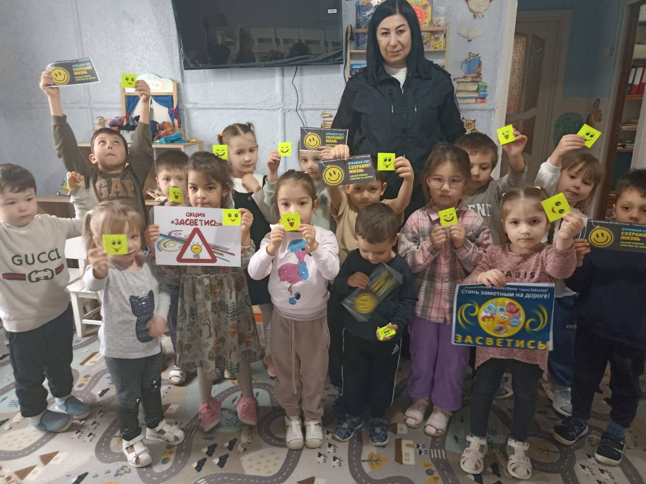 Сотрудники Госавтоинспекции МВД России «Адыге-Хабльский» провели информационное мероприятие «Засветись!» с воспитанниками детского сада «Ласточка» п. Эркен-Шахар .