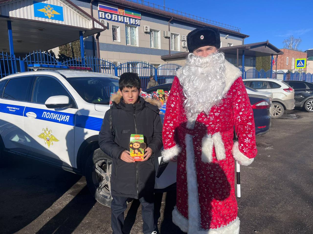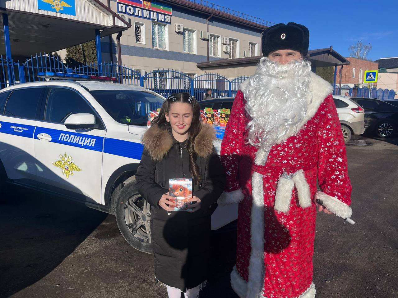 В рамках проведения Всероссийской акции «Полицейский Дед Мороз» , в преддверии Новогодних праздников, сотрудники Госавтоинспекции МО МВД России «Хабезский» поздравили в ауле Хабез участников дорожного движения с наступающим Новым годом.