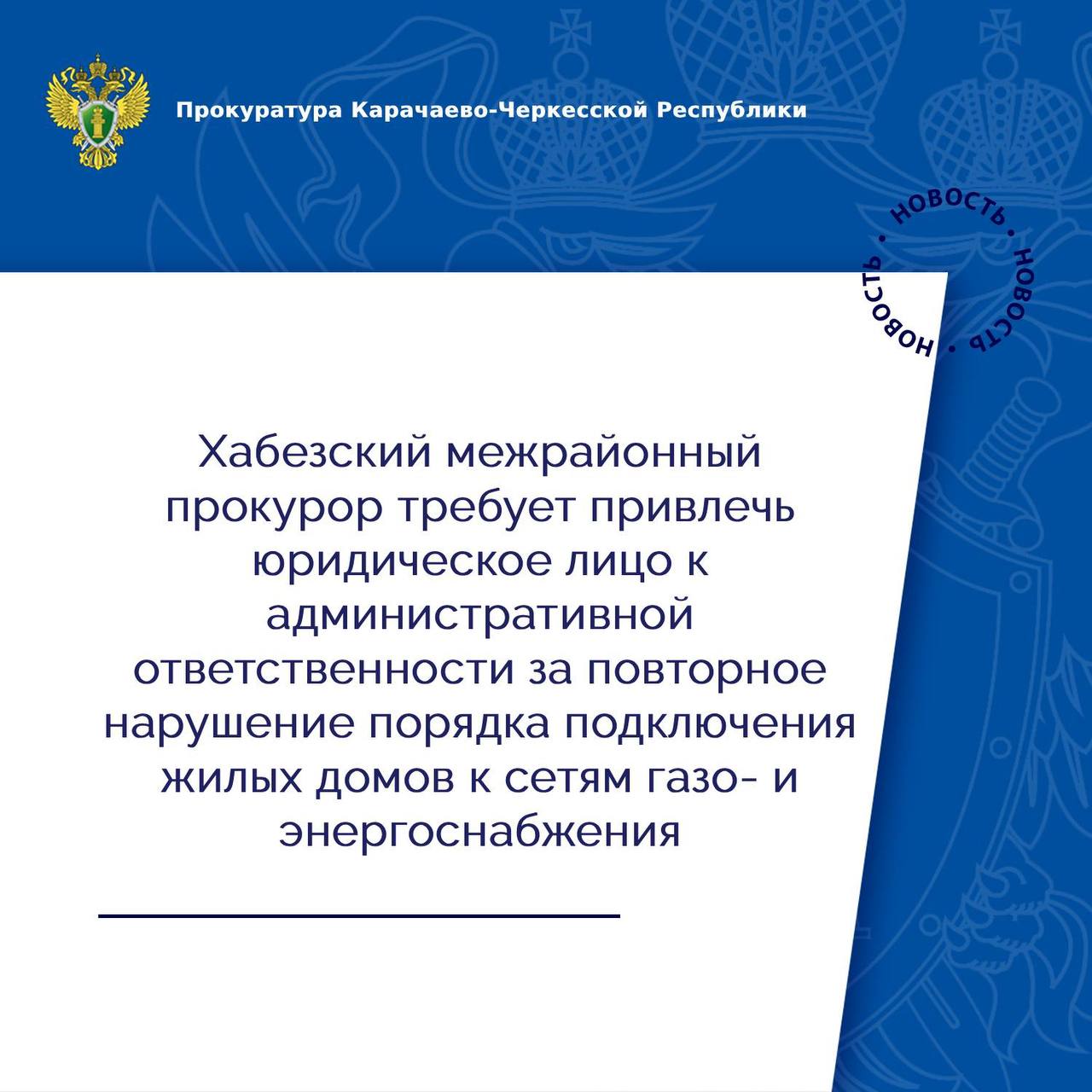 Хабезская межрайонная прокуратура провела проверку соблюдения законодательства, регламентирующего порядок технологического присоединения объектов капитального строительства к сетям электроснабжения.