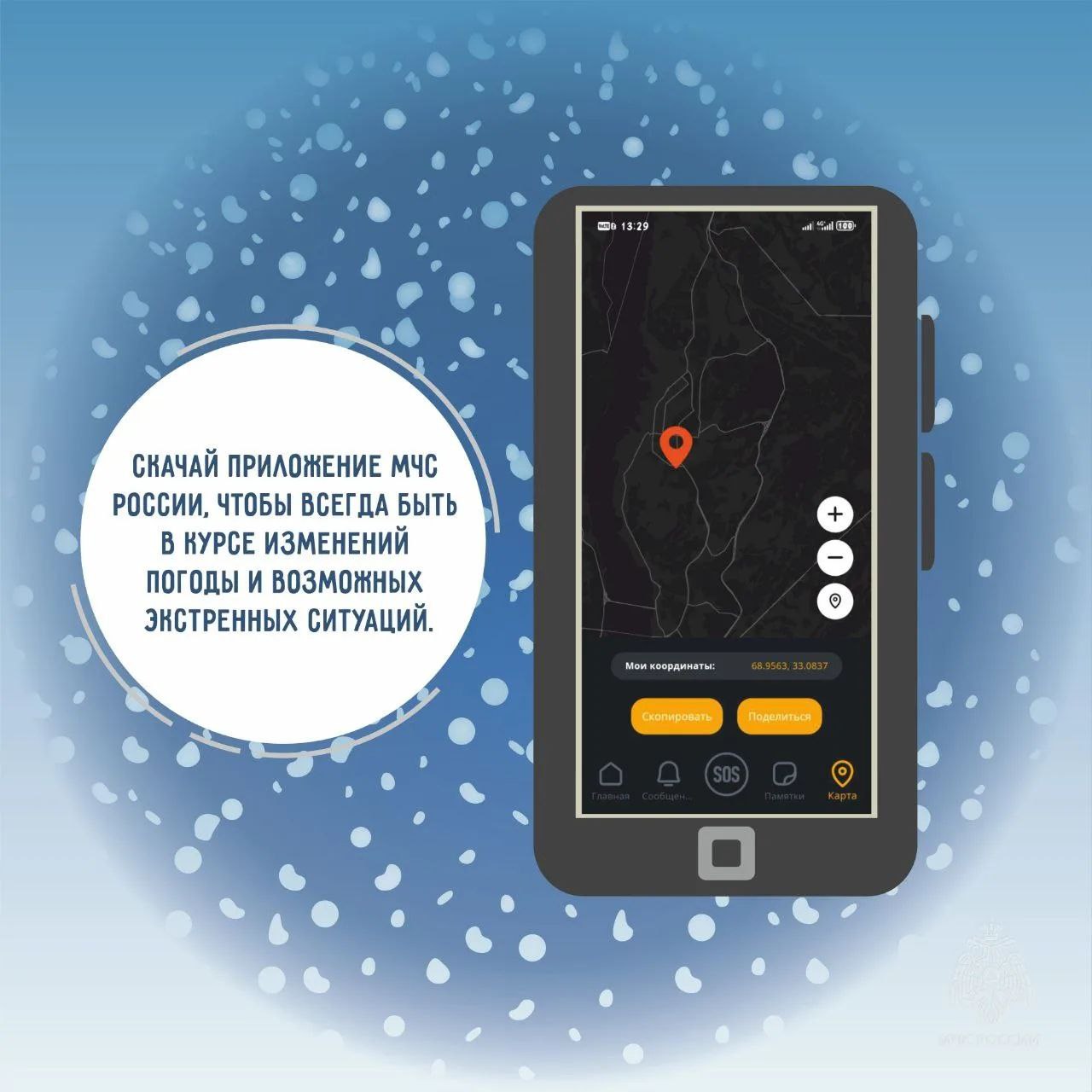 Подробнее о том, как действовать в условиях непогоды смотри в карточках МЧС России.