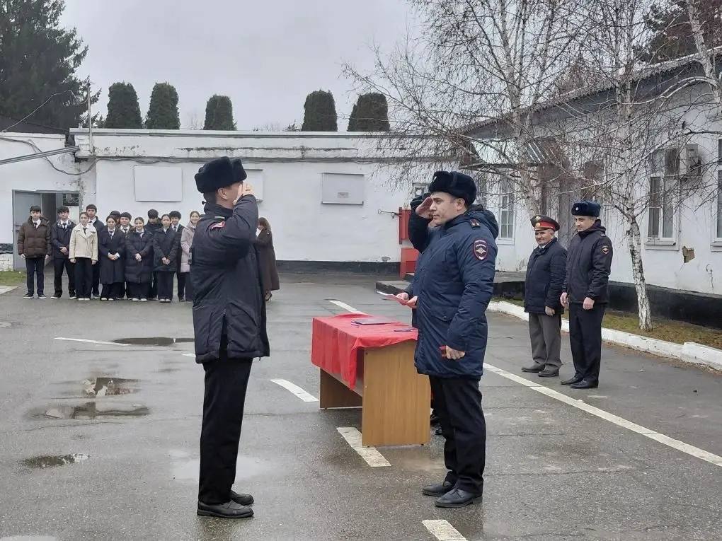 Приказом начальника отдела МВД России по Усть-Джегутинскому району молодой сотрудник был приведен к присяге. С этого дня он официально заступил на службу в одно из подразделений отдела. Также в рамках церемонии состоялось вручение погон с очередными специальными званиями отличившимся сотрудникам.