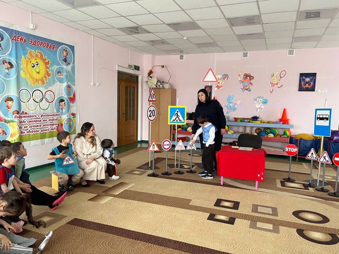 Сотрудники отделения Госавтоинспекции Межмуниципального отдела МВД России «Адыге-Хабльский» провели с воспитанниками детского сада «Эльнур» а.Икон-Халк профилактическое мероприятие по дорожной безопасности.