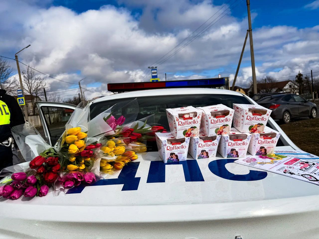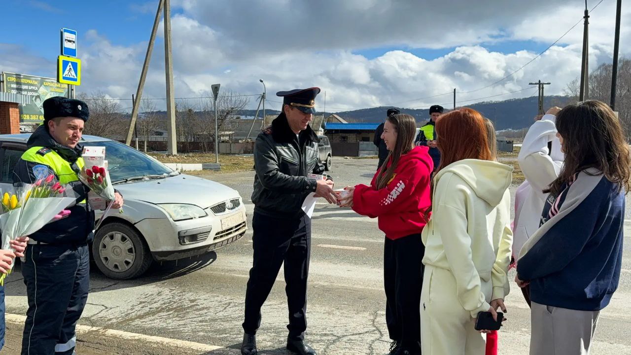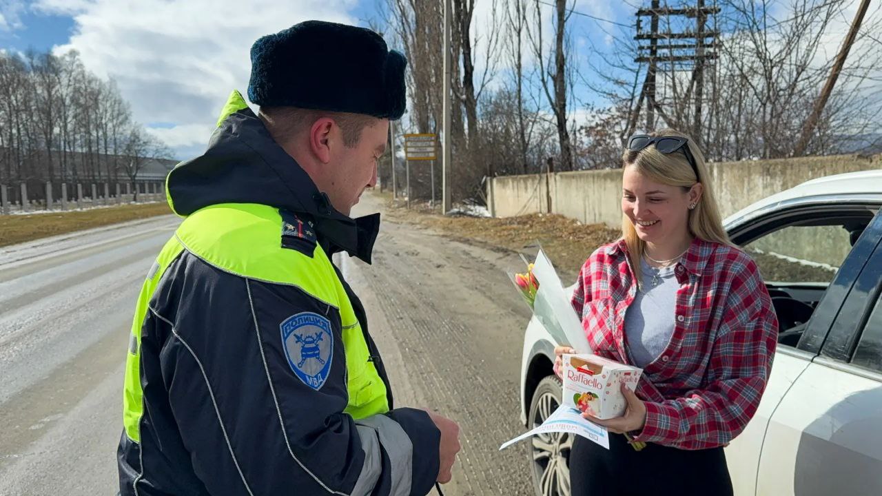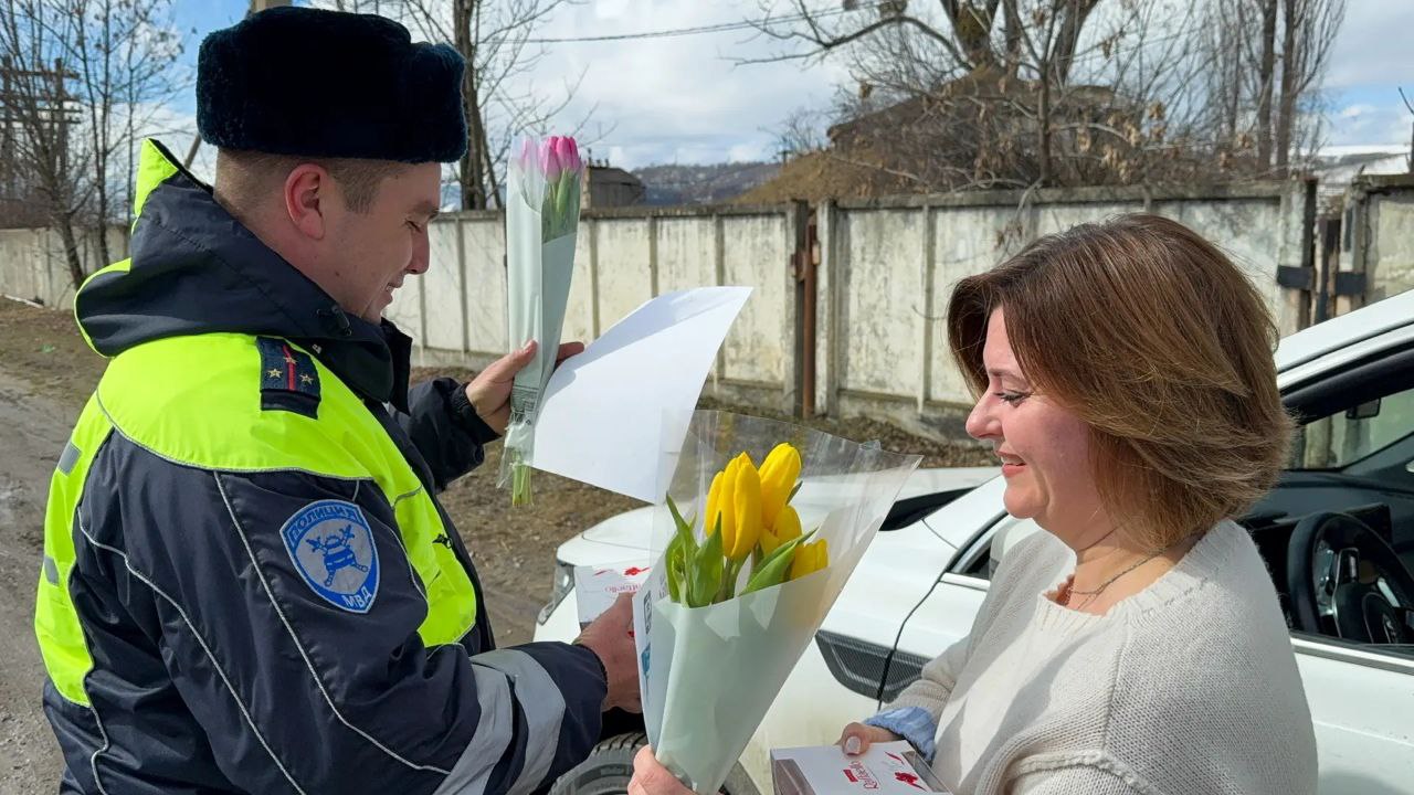 Начальник Межмуниципального отдела МВД России Зеленчукский полковник полиции Ковалев Евгений совместно с сотрудниками Госавтоинспекции МО МВД России «Зеленчукский» в рамках традиционных акций «Цветы для автоледи» и «8 Марта - В каждый Дом!» поздравили автоледи с женским днем!