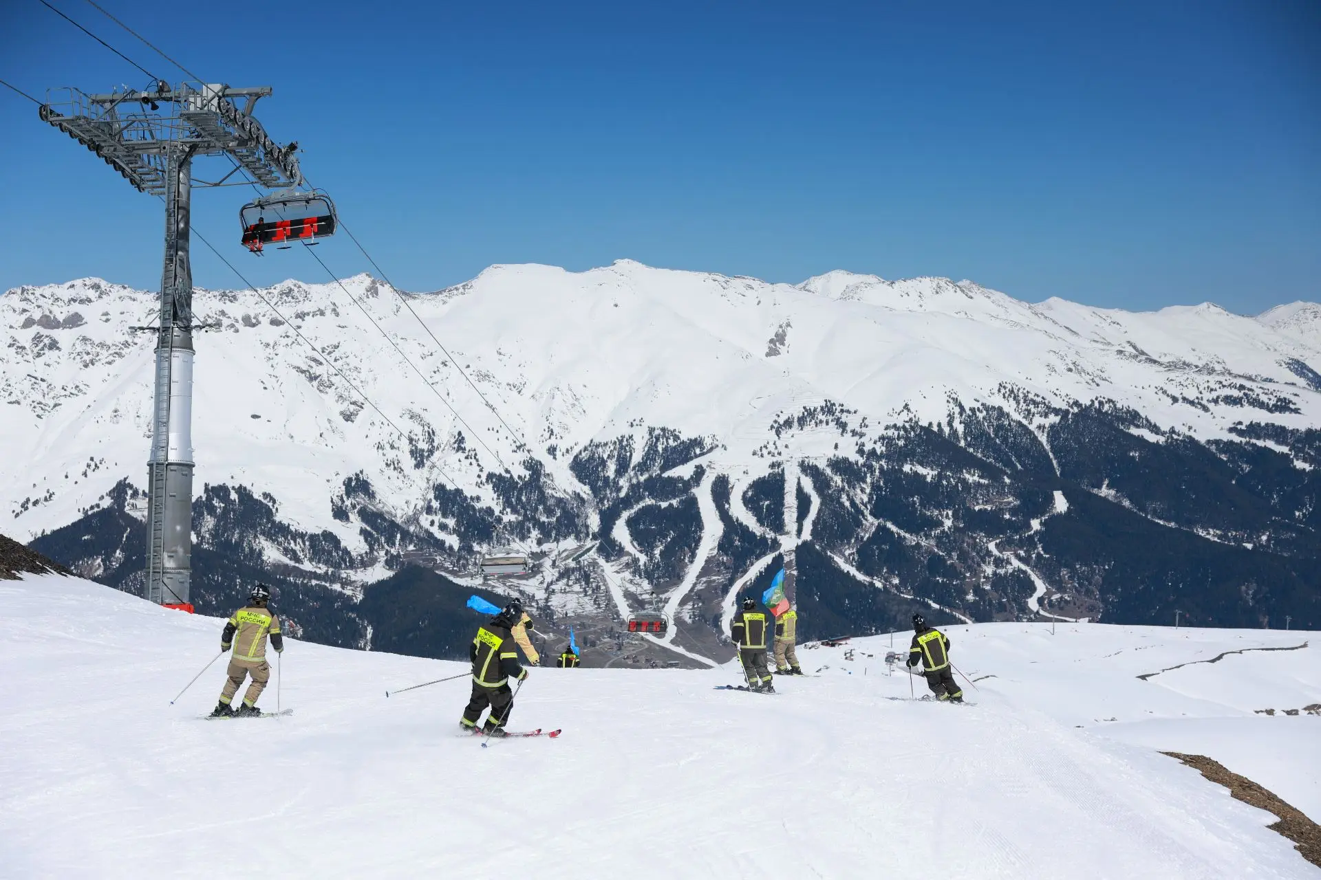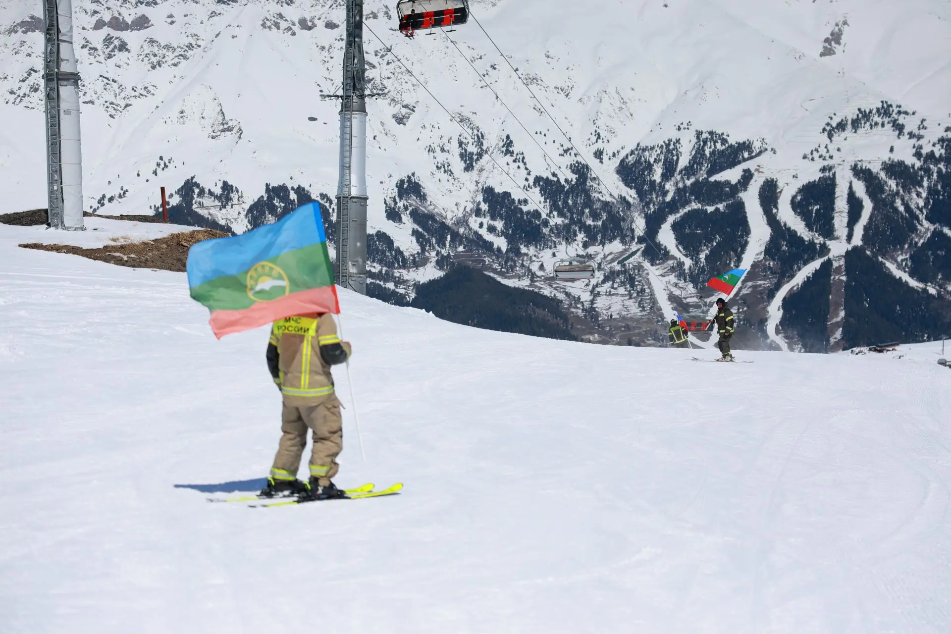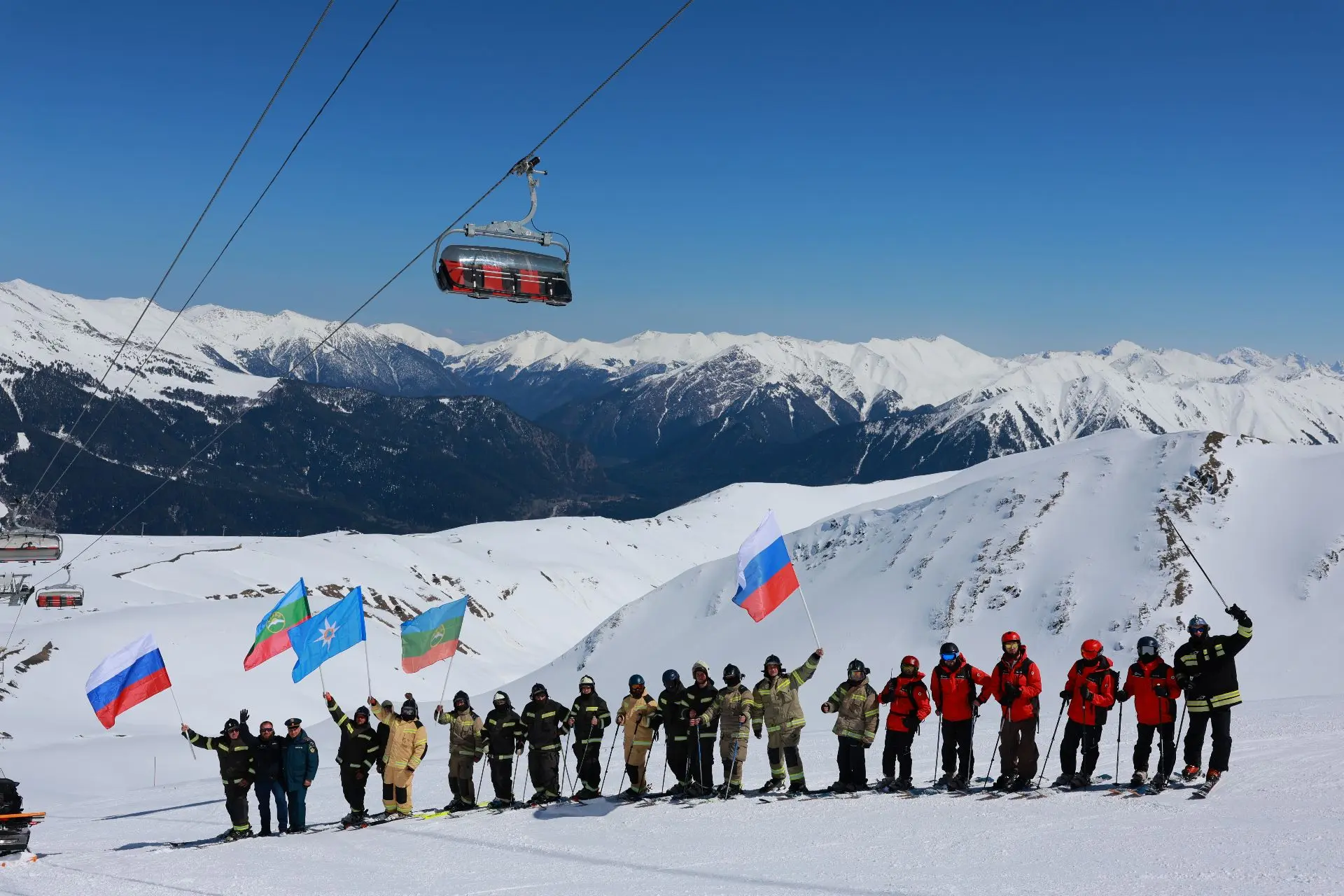 Пожарно-спасательный флешмоб прошёл в два этапа. На Северном склоне спасатели и огнеборцы совершили серию синхронных спусков в боевой экипировке и с флагами Российской Федерации, Карачаево-Черкесской Республики и МЧС России. Зрелищно и точно, в ритме команды. Отдельной частью программы стал скоростной спуск с фаерами, а финалом— акробатический проезд через водную преграду. Технически сложная и зрелищная дисциплина требует физической подготовки, контроля оборудования и профессионализма. Именно она вызвала большой интерес у отдыхающих курорта.