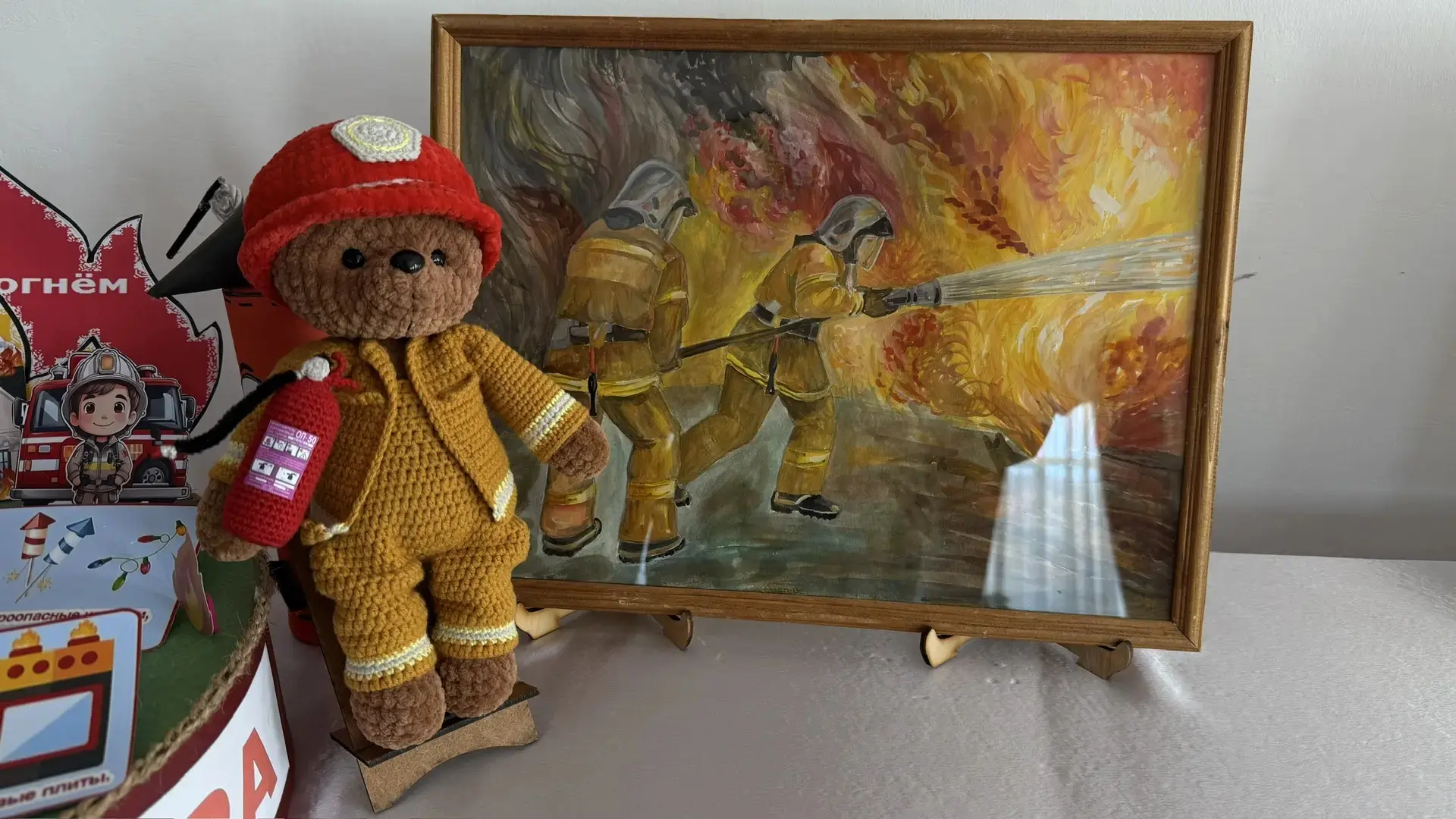 В своих работах дети постарались изобразить сотрудников чрезвычайного ведомства, их труд, пожарно-техническое вооружение подразделений МЧС России, деятельность подразделений пожарной охраны при ликвидации пожаров, природные пожары и первичные средства пожаротушения.