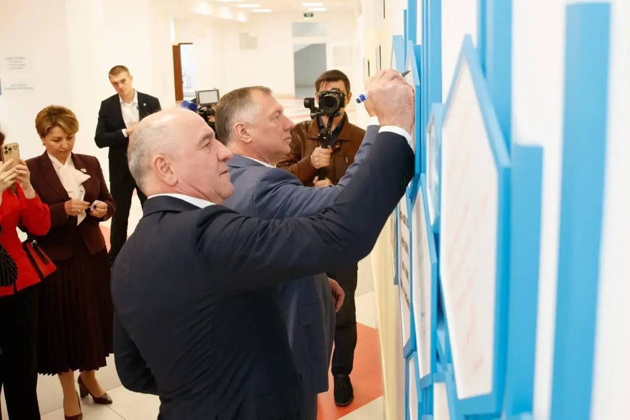 Они осмотрели музейный комплекс и шахматную гостиную. Побывали в центре цифрового образования «IT-КУБ.КЧР». Юные инженеры, занимающиеся робототехникой, продемонстрировали свои проекты. Оценили спортивную подготовку ребят на тренировках по тхэквондо и футболу. И посетили кампус, где живут и учатся талантливые школьники из всех районов Карачаево-Черкесии. Марат Хуснуллин оставил пожелание для воспитанников Центра на стенде «Приветственная зона».