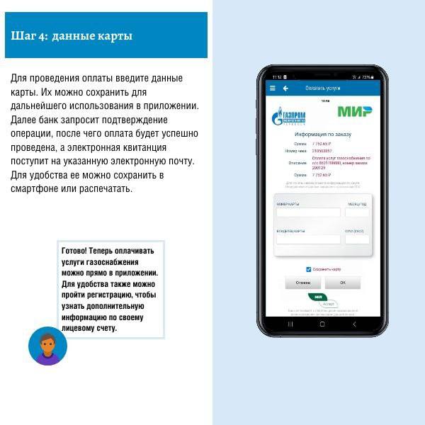 Как оплатить услуги газоснабжения в мобильном приложении без регистрации расскажем в карточках