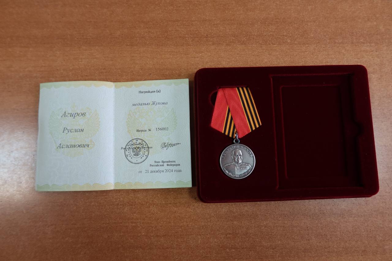 За проявленное мужество и самоотверженность в ходе выполнения боевых задач Руслан Асланович Агиров был награжден Медалью Жукова посмертно.
