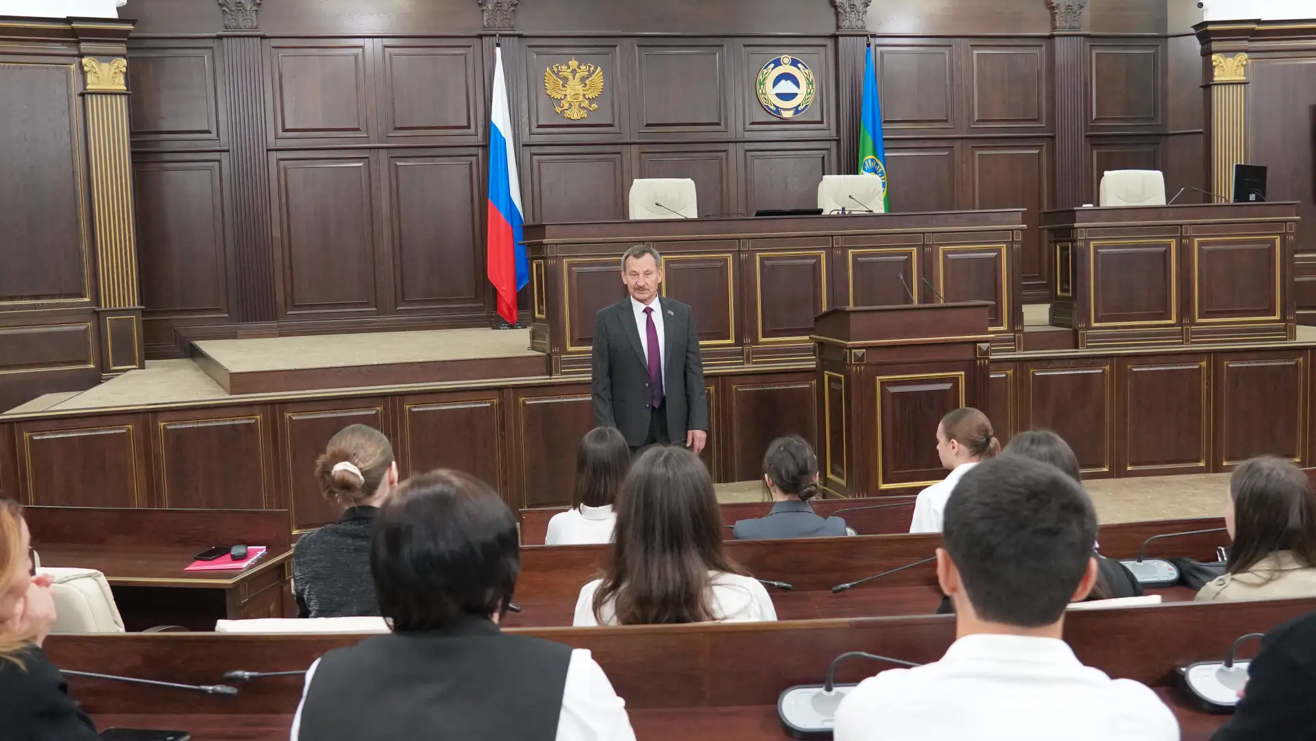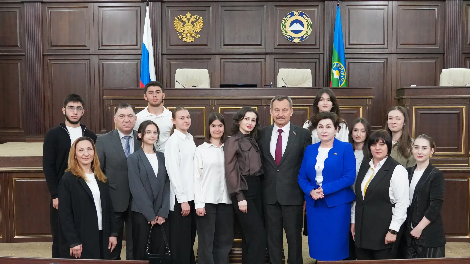 Первый вице-спикер Хызыр Чеккуев, депутаты Хасан Хубиев, Крым Шнахов, Игорь Гонов, Татьяна Черняева, Алексей Ганшин, Али Асланов, Руслан Джамбаев рассказали ребятам о Конституции КЧР, которая в этом году отметила своё 30-летие, о работе парламентских Комитетов, законотворческой и общественной деятельности.