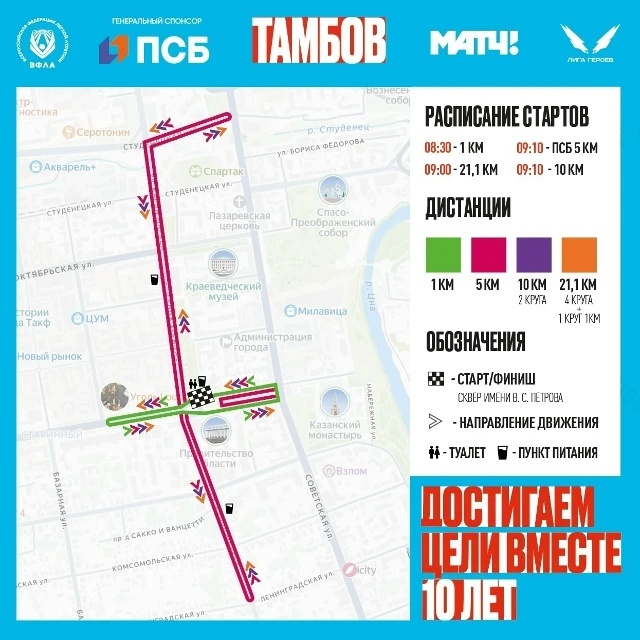 Полумарафон Забег.РФ стартует в Тамбове 23 мая на площади Ленина (6+)