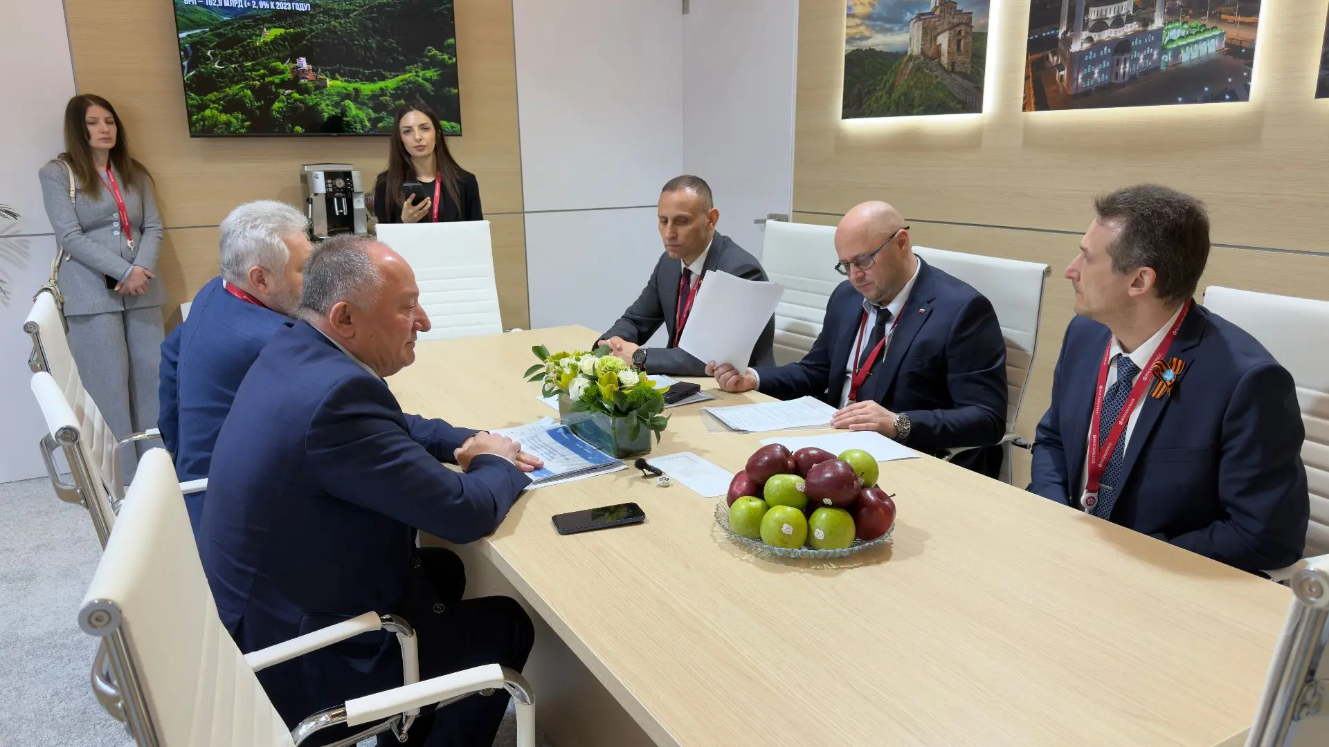 На стенде Карачаево-Черкесской Республики в рамках КИФ состоялась рабочая встреча заместителя руководителя Росреестра Максима Смирнова с первым заместителем Председателя Правительства КЧР Дагиром Смакуевым.