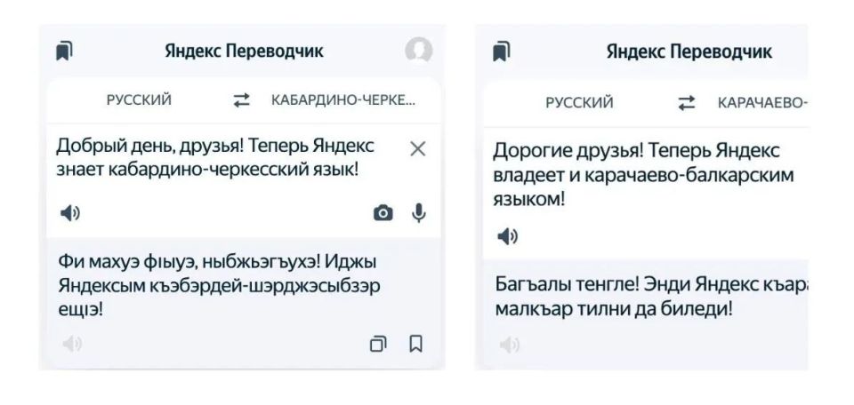 В сервисе «Яндекс Переводчик» появились карачаево-балкарский и кабардино-черкесский языки. Сервис позволяет переводить тексты на более сотни других языков и наоборот.Проект был запущен при поддержке Дома народов России и Федерального агентства...