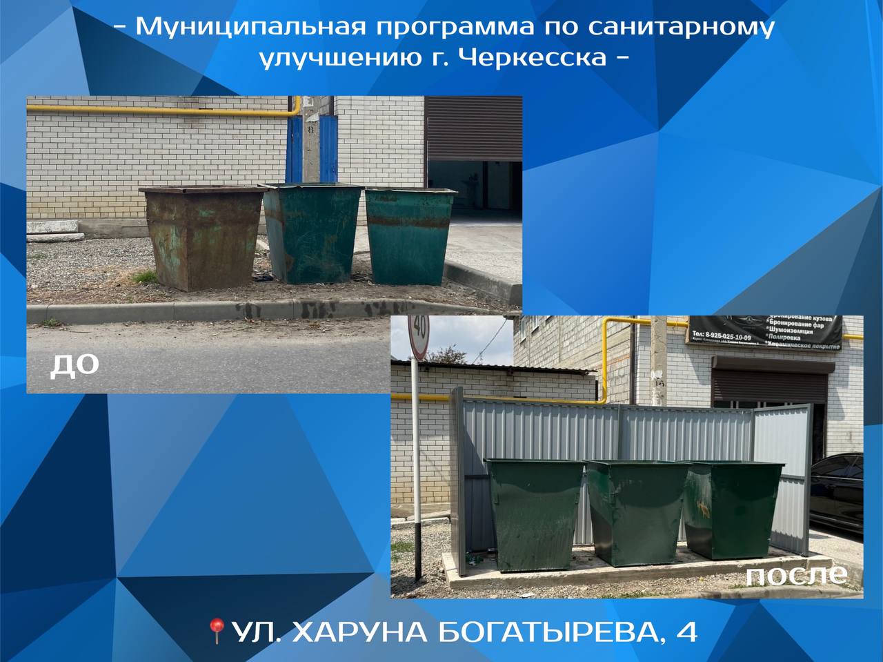 До 2027 года включительно в Черкесске будет обустроено 159 площадок, установлено 400 контейнеров. Так мы приведем в соответствие порядка 75 % от общего количества площадок.