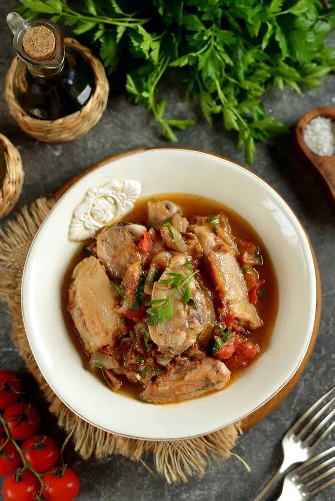 Тушеная курица в томатном соусе – это не просто ужин, а настоящее кулинарное приключение, которое не оставит равнодушными ни вас, ни ваших гостей.