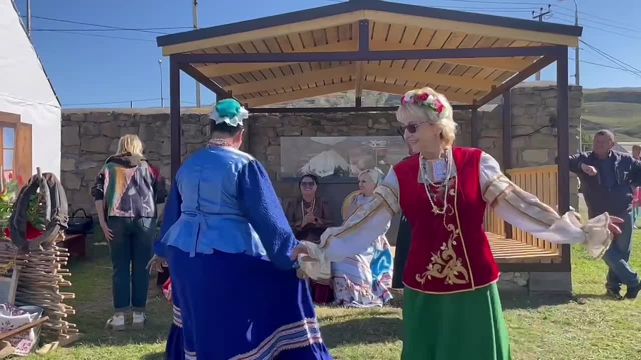 Продолжается историко-культурный фестиваль «Кавказский рубеж». Во дворе сторожевой башни проходит иммерсивный спектакль – театрализованное представление с участием национальных подворий, показывающих традиции и быт народов Карачаево-Черкесии