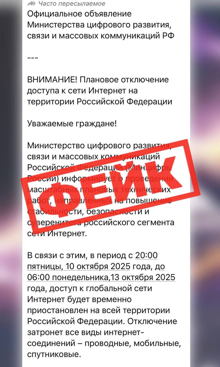 Информация в мессенджерах о планах по отключению интернета в России — фейк