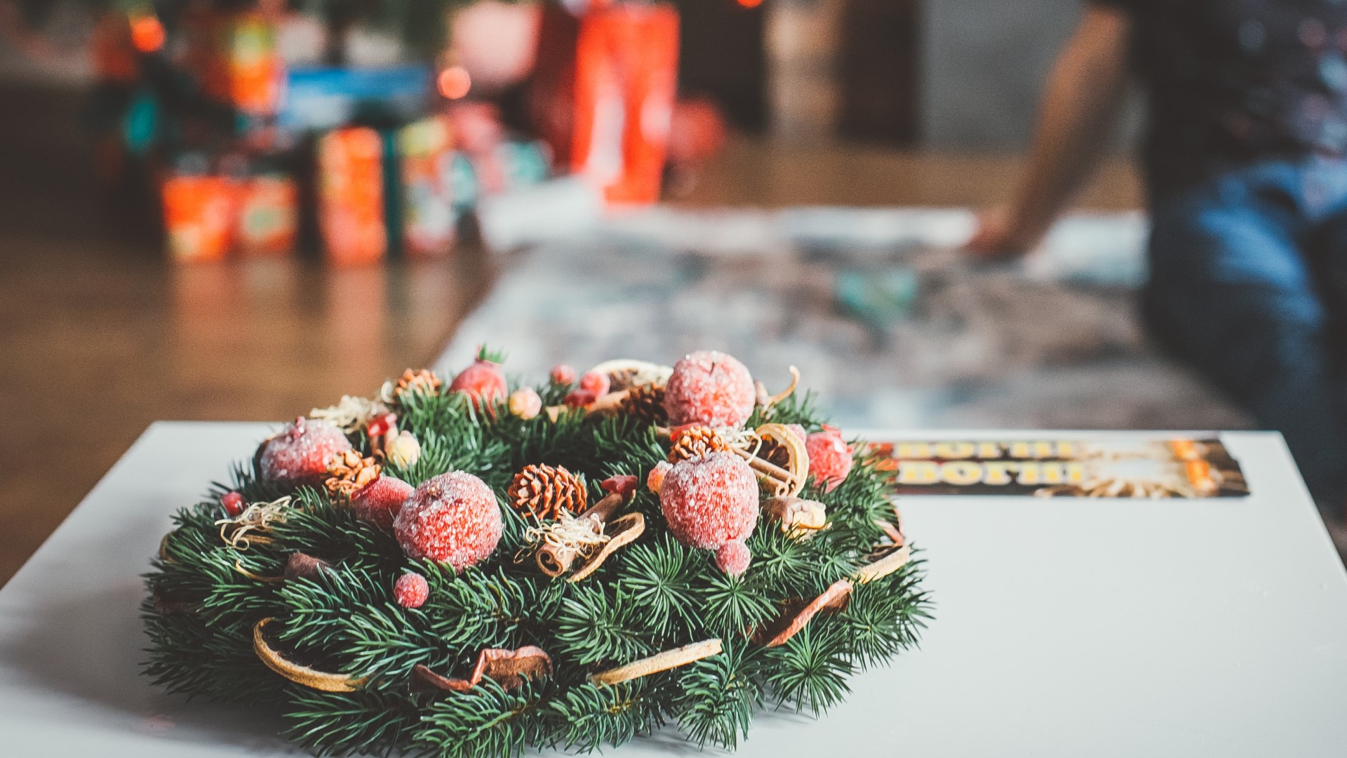 Попробуйте для начала создать еловые композиции в комнатах. Соберите букеты из веточек разных размеров и высоты. Расставить их можно на подоконниках, украсив веточками рябины. Идеально в эту картину впишутся праздничные свечи.