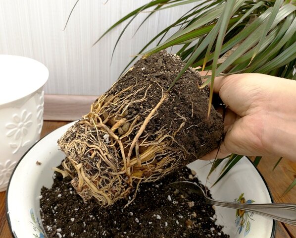 - Если корни плотно обвили ком, переместите его в новый горшок полностью, добавив свежую почву вокруг — так драцена легче адаптируется после пересадки и сразу начинает уходить в рост.