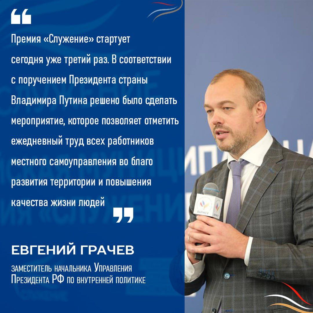 Евгений Грачев отметил, что идея Премии возникла не случайно, а Ирина Гусева отметила, что она даёт возможность продемонстрировать лучшие практики, выразить благодарность тем, кто служит малой родине, внедряет инновации и сохраняет исторические корни.