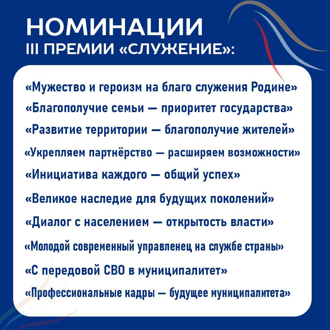 В этом году введены две новые номинации: проекты поддержки участников спецоперации и системная работа с кадрами муниципалитетов.