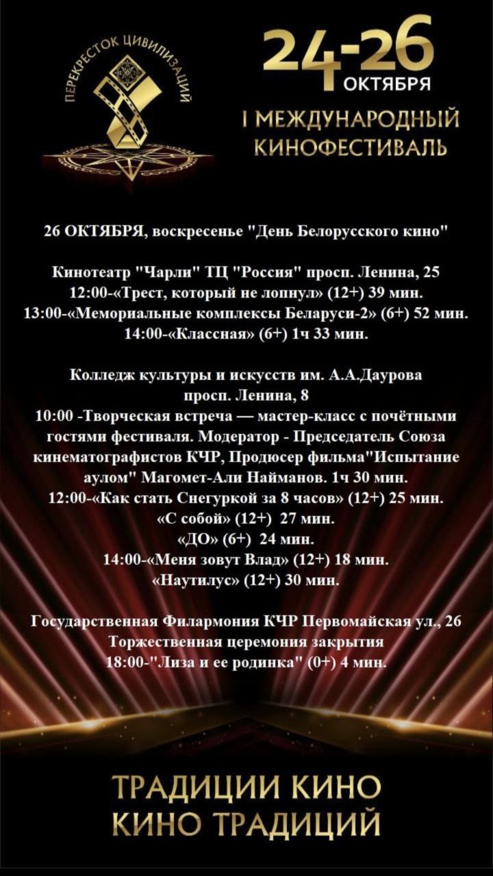 Международный кинофестиваль «Перекресток цивилизаций» проходит в нашей республике с 24 по 26 октября. На суд жюри были представлены 155 картин-претендентов от участников из 13 уголков планеты.