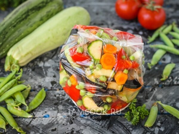 - Овощное рагу: баклажаны, кабачки, помидоры, морковь и зеленый горошек — настоящая находка для быстрого ужина. Просто нарежьте все ингредиенты, аккуратно заморозьте и используйте по мере необходимости.