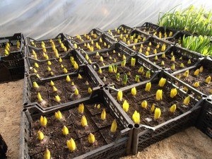 - Правильная посадка: Для укоренения и подгонки под нужный график цветения, луковицы высаживаются в контейнеры с рыхлой грунтом, оставляя их на 2-3 см выше уровня почвы.