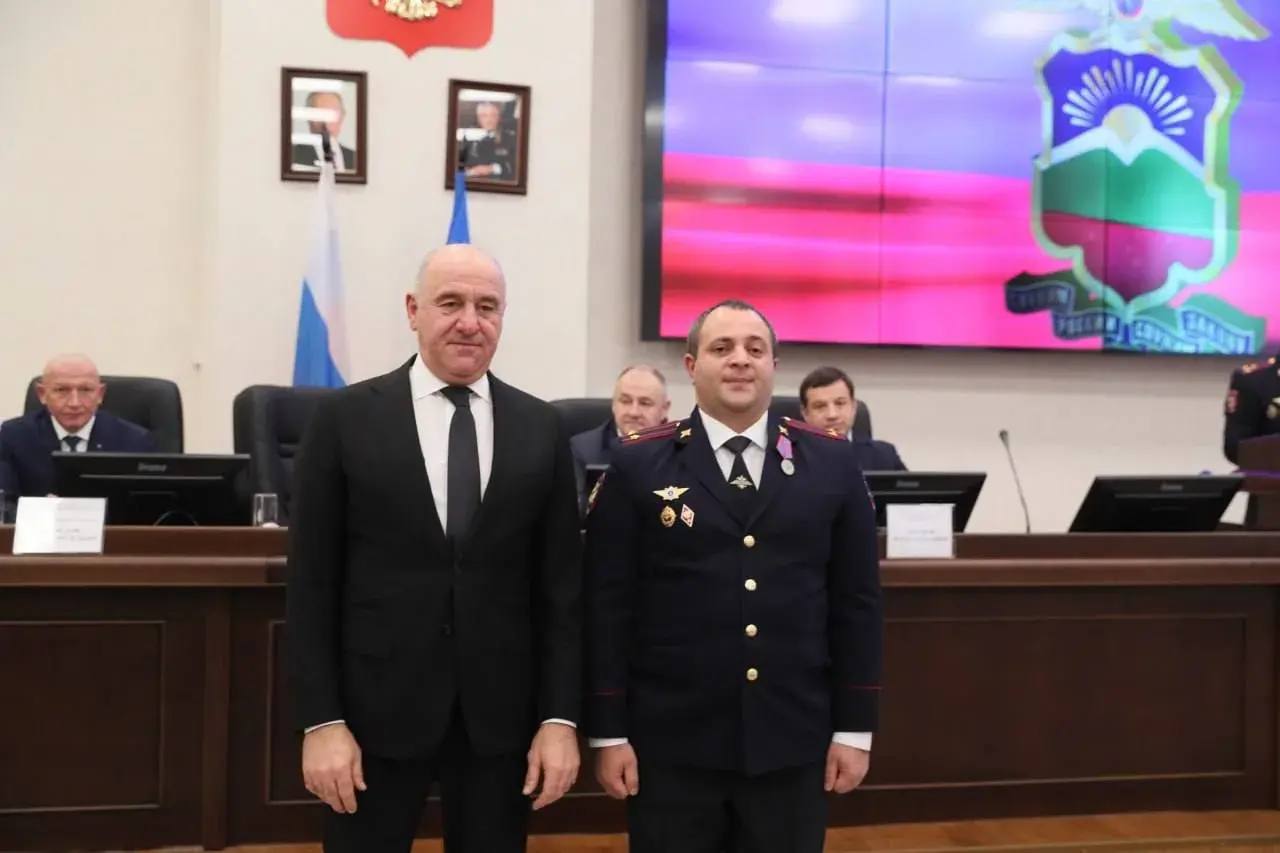 Рашид Темрезов вручил сотрудникам, отличившимся в службе, государственные награды и почётные звания, а также поздравил министра МВД по КЧР Владимира Нефедова с присвоением звания генерал-майора полиции.