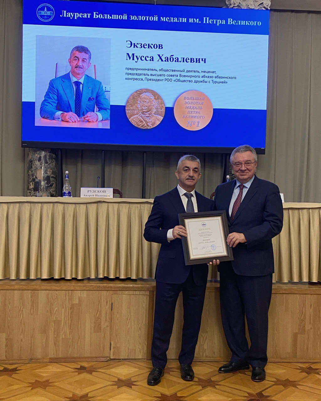 Заместитель председателя Народного Собрания (Парламента) КЧР Мусса Экзеков стал первым лауреатом Большой золотой медали имени Петра Великого.