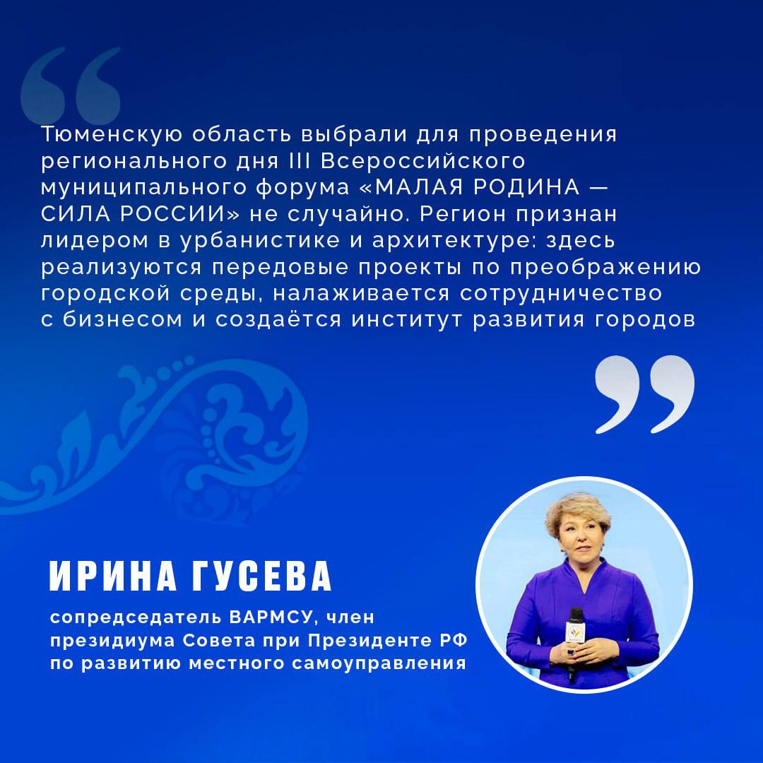 В Тюменской области проходят региональные дни III Всероссийского муниципального форума «МАЛАЯ РОДИНА – СИЛА РОССИИ», организованного Всероссийской ассоциацией развития местного самоуправления (ВАРМСУ) при поддержке Администрации Президента Российской Федерации.