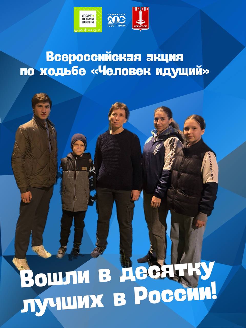 Друзья, рады сообщить, что команда из Черкесска вошла в десятку лучших в стране по итогам всероссийского чемпионата по фоновой ходьбе «Человек идущий».