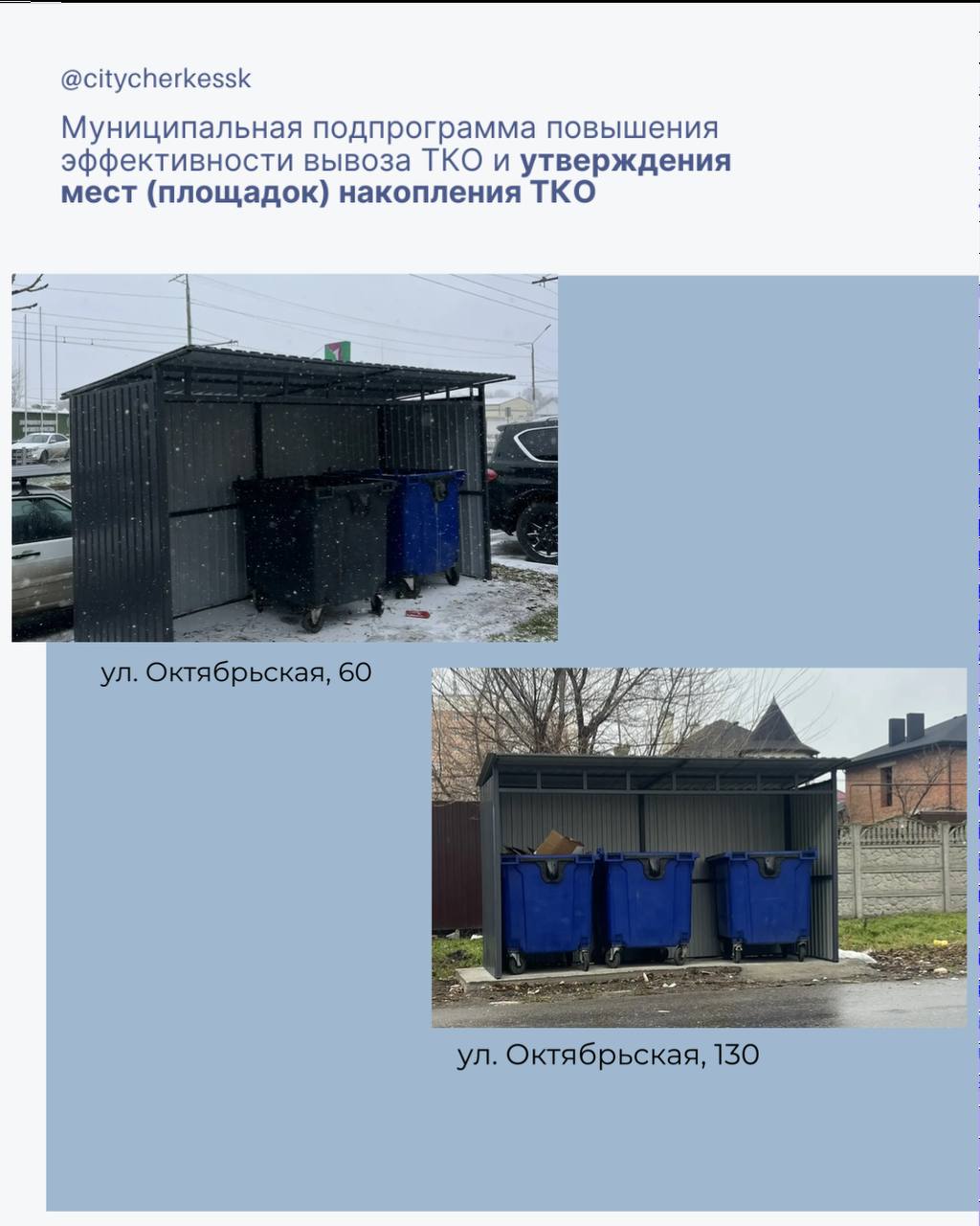Все мероприятия подводятся в рамках подпрограмма повышения эффективности вывоза ТКО и утверждения мест (площадок) накопления ТКО» муниципальной программы «Благоустроенный Черкесск».