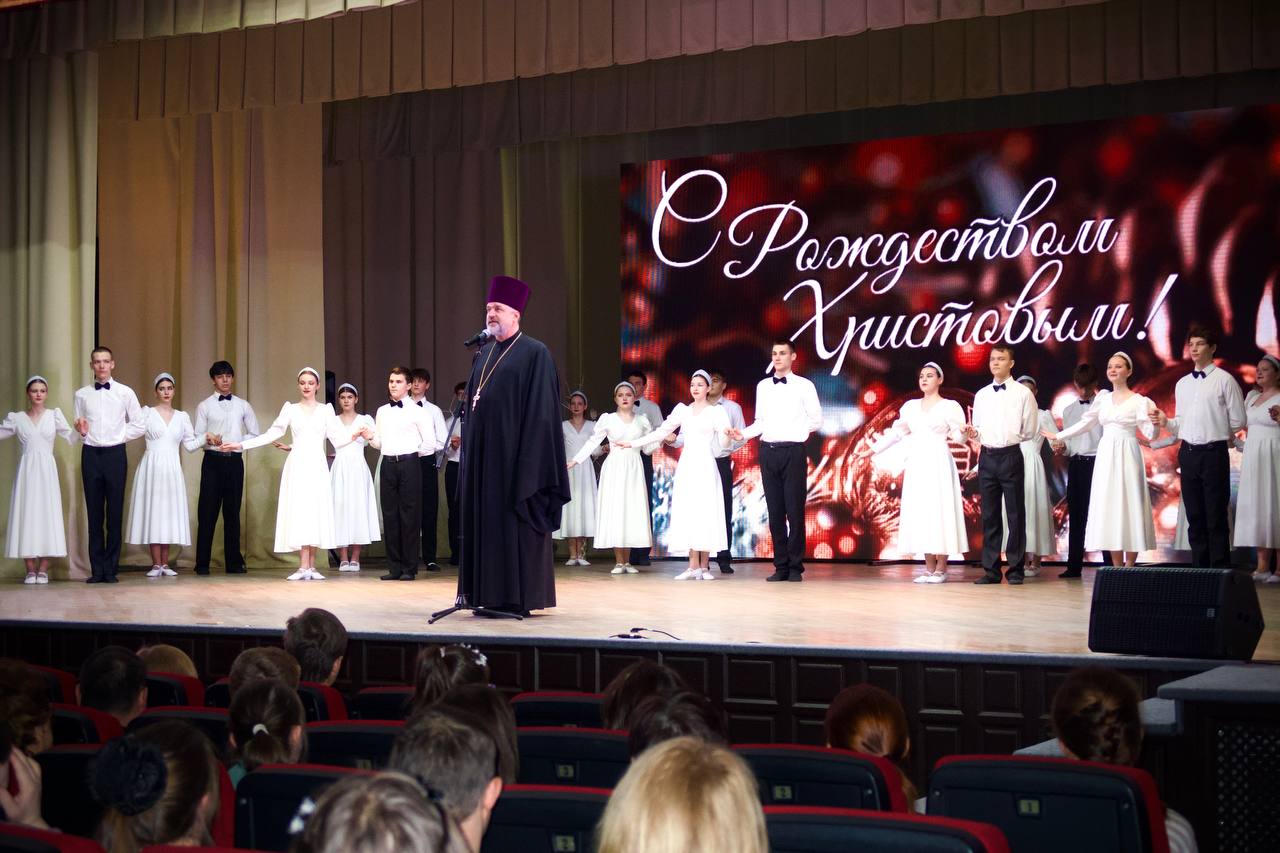 Юные горожане посмотрели новогоднее представление и повеселились от души. Каждый из них получил сладкий подарок от Пятигорской и Черкесской епархии.