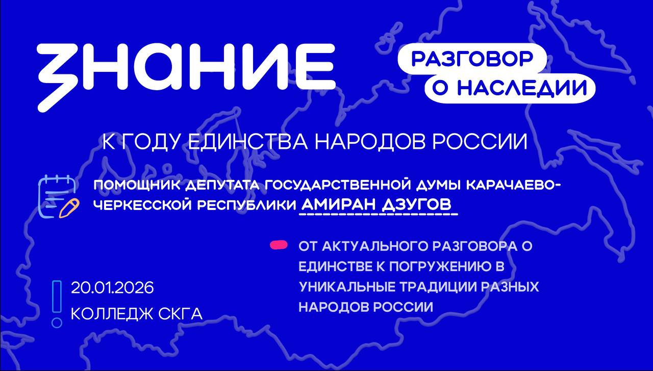 Уже 20 января Российское общество «Знание» проведет в столице КЧР специальную лекцию для 250 студентов. Мероприятие посвящено Году единства народов России