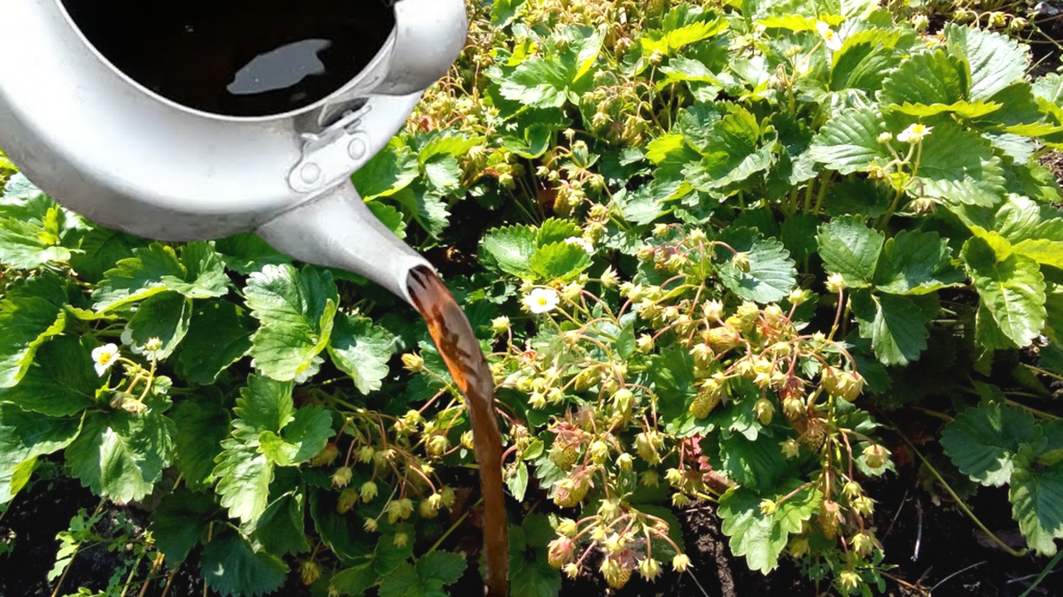 Размешайте состав, дайте настояться 10 минут и поливайте клубнику по 0,5 литра под каждый куст. Это необходимо делать в течение 5-7 дней после цветения.