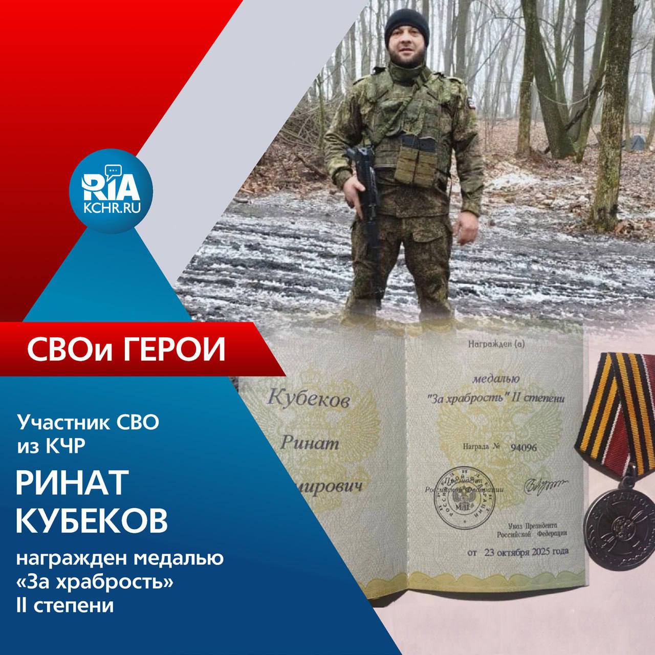 Военнослужащий из КЧР, житель поселка Красивый Прикубанского района республики Ринат Кубеков за мужество и отвагу при выполнении боевой задачи награжден медалью «За храбрость» II степени