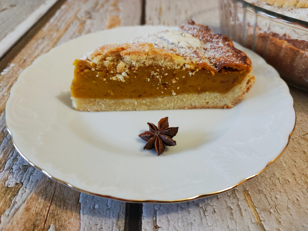 Этот ароматный десерт станет настоящим украшением любого стола! В основе — хрустящее песочное тесто, а в качестве начинки — нежное тыквенное суфле, полное пряного вкуса.