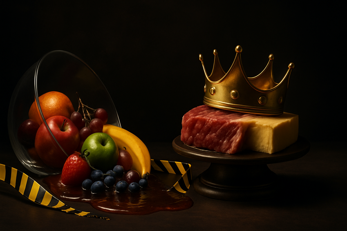 Фрукты содержат витамин C и другие фитохимические вещества, но многие жизненно важные нутриенты — витамины A, D, K2, B12, гемовое железо и коферменты — чаще встречаются в животных продуктах и в более биодоступной форме. Это не отказ от фруктов, а баланс, в котором плотная животная пища обеспечивает фундамент для здоровья на уровне клеток.