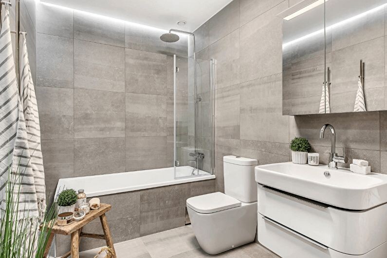 Ещё один элемент — минимальная техника на виду. Лёгкая встроенность хранения и стеклянные перегородки расширяют пространство и упрощают уход, а современные смесители снижают расход воды без потери комфорта.
