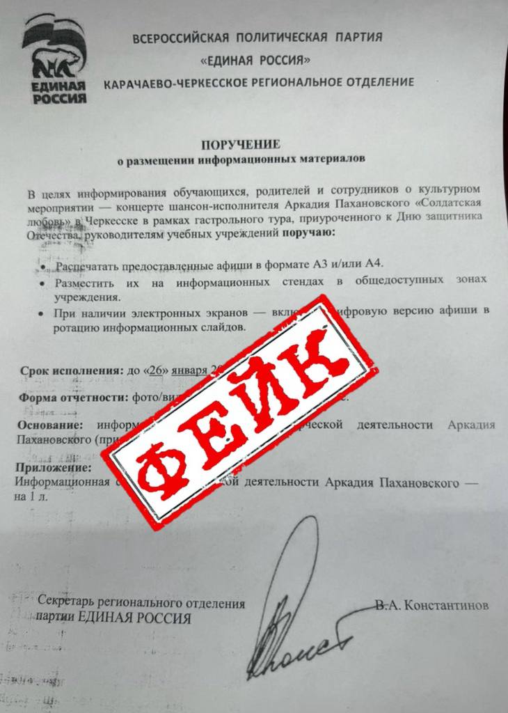 В республике распространяется ложная информация о якобы планируемых концертах исполнителя шансона. Мошенники, используя имя партии, рассылают соответствующие «поручения» и «уведомления».