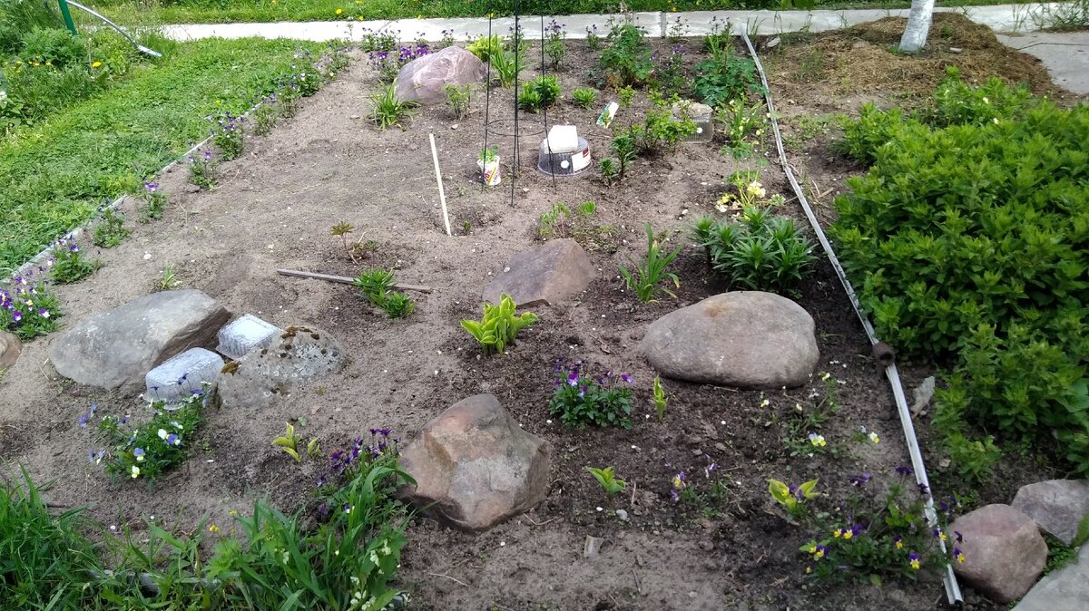 Пересадка выполнялась по правилам: глубокая осторожная выкопка, отделение повреждённых корней, присыпка срезов золой и обильный полив. Первые дни растения заметно привяли, особенно аквилегии с длинным стержневым корнем, но уже через неделю началось активное отрастание зелёной массы. Кусты, пересаженные раньше (2,5 недели назад), набрали силу и даже зацвели на следующий сезон.