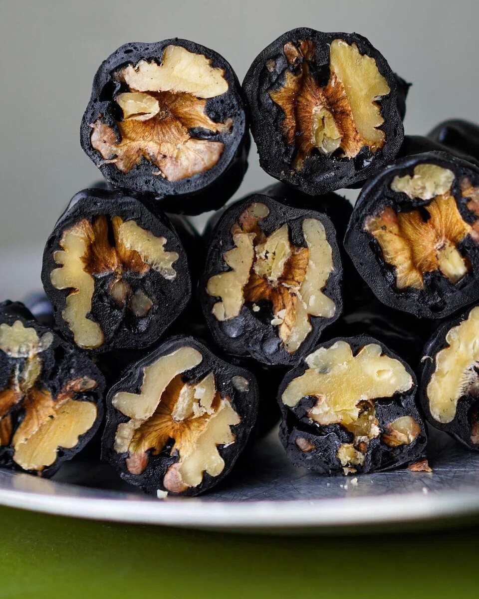 Это не просто десерт, это новое прочтение классической грузинской сладости! Тотальная черная чурчхела предлагает уникальное сочетание: в ней используются мармелад на основе виноградного сока и грецкие орехи. При этом цвет изделия полностью черный, что придает ему загадочный и даже немного мистический вид.