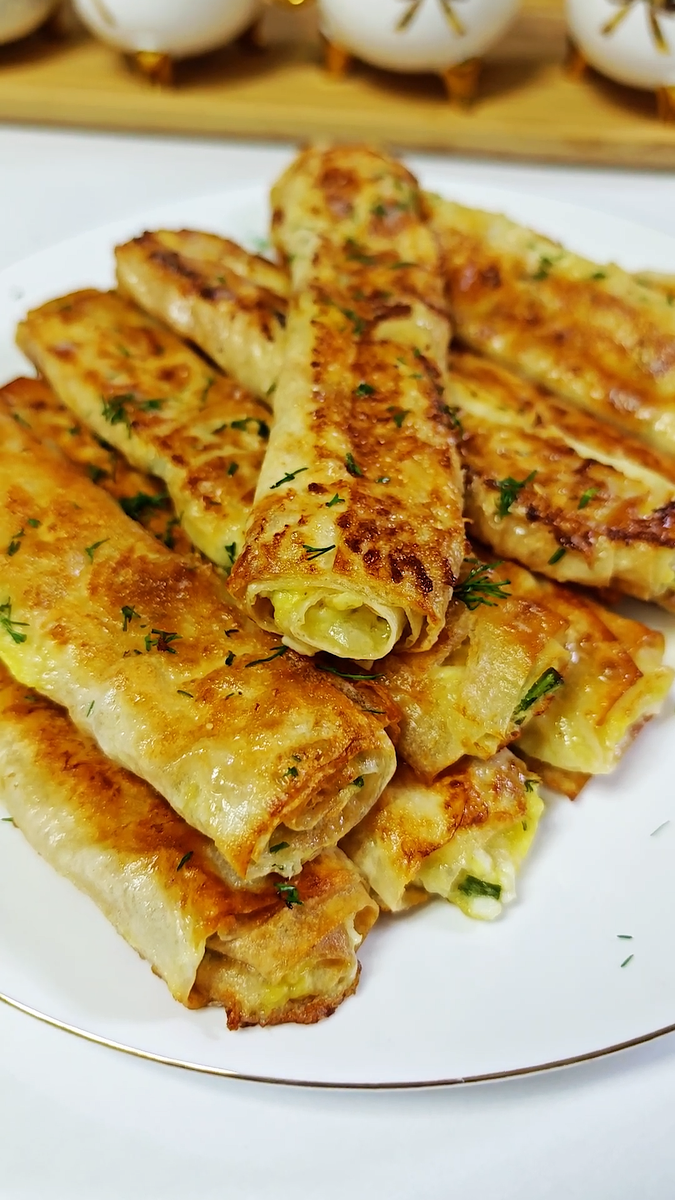Рулетики получатся с хрустящей корочкой снаружи и мягкой, насыщенной начинкой с сыром и яйцом внутри. Это отличный выбор для завтрака или лёгкого перекуса, готовящегося всего за несколько минут.