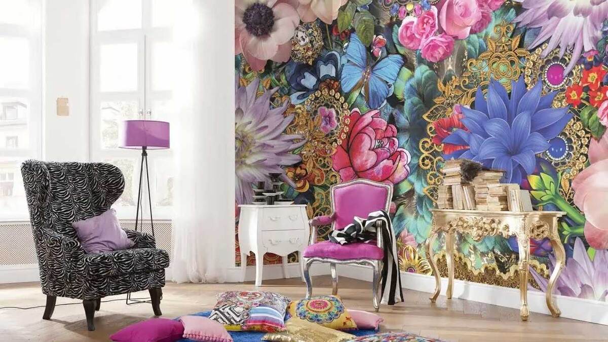 Использование крупных принтов требует осторожности. Профессионал может правильно сочетать паттерны, но малейшая ошибка может привести к безвкусице. Лучше использовать обои с новыми узорами в качестве акцентов на нейтральном фоне.