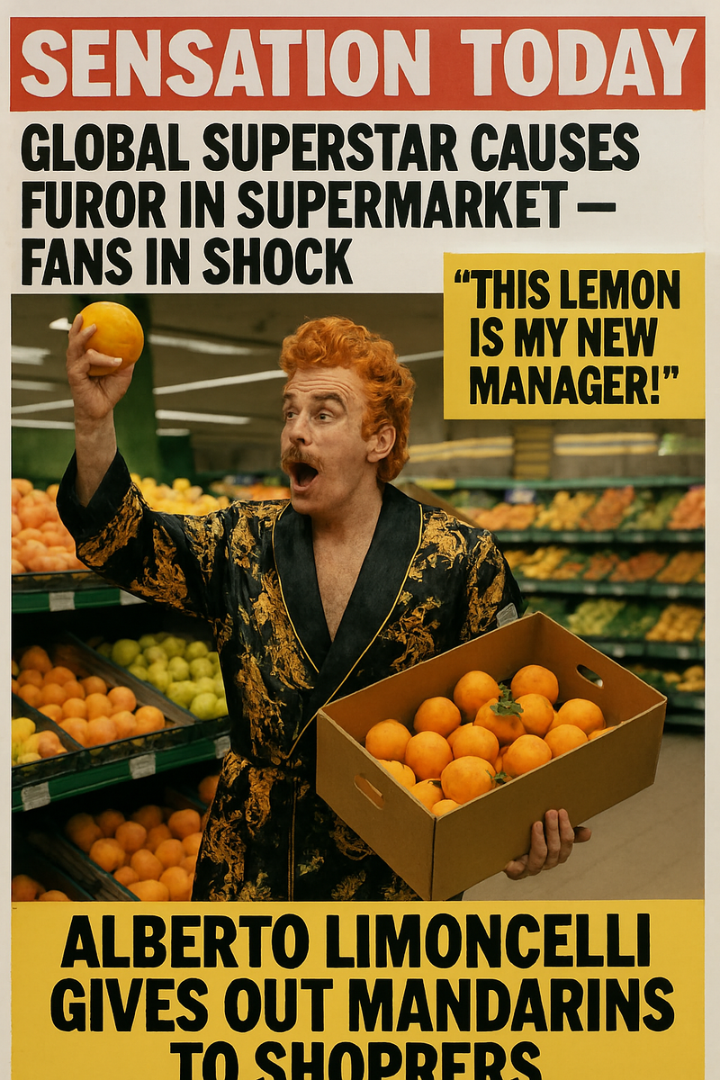 Сегодня в центре внимания оказался Альберто Лимончелли — знаменитость, известная своим эксцентричным стилем и привязанностью к цитрусовым. Этот неожиданный визит в «Солнечный Маркет» вызвал бурю эмоций среди поклонников.